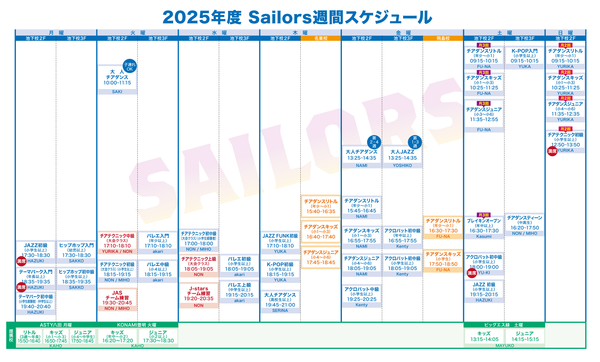 3歳から高校生を対象としたクラスのインストラクターをしている。セイラーズでは大人クラスを担当。