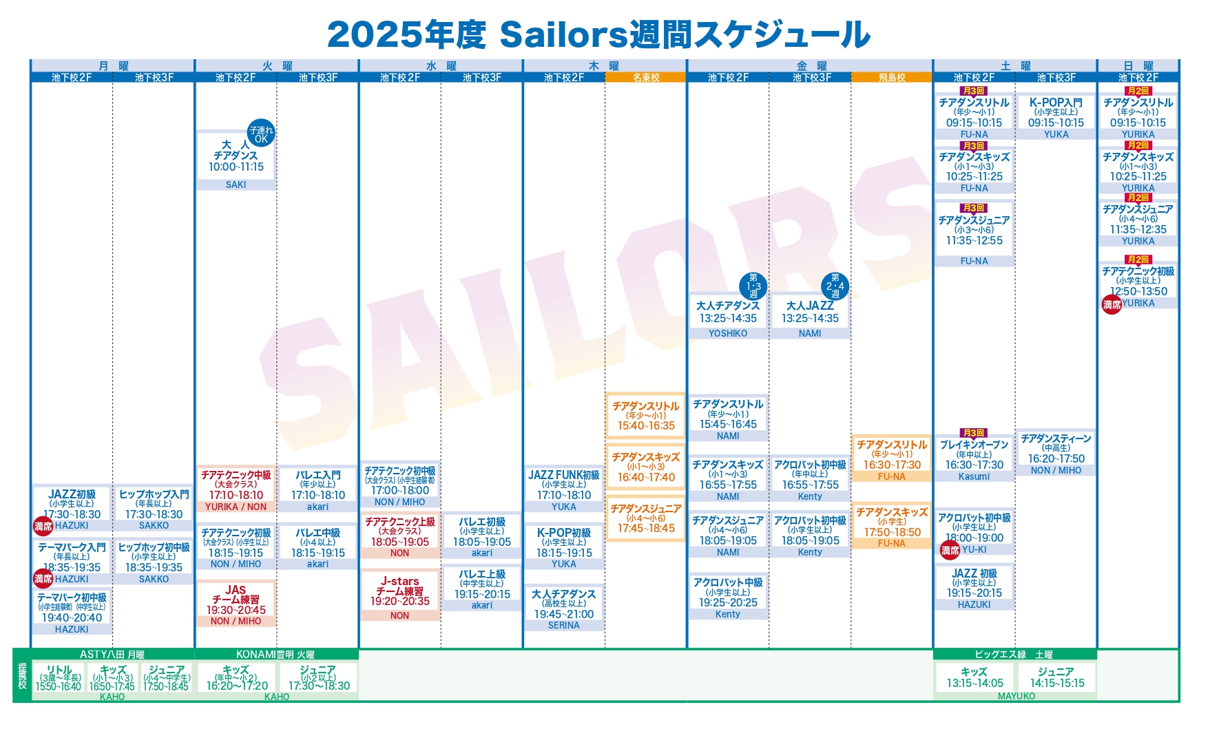 3歳から高校生を対象としたクラスのインストラクターをしている。セイラーズでは大人クラスを担当。